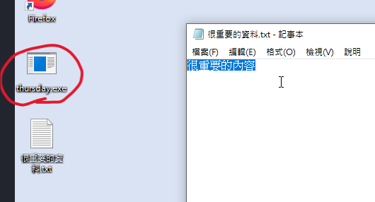這個 thursday.exe 就是他寄給我的惡意軟體。