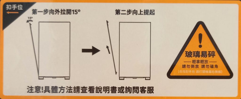 機殼兩側都有小把手可以輔助拆裝,除了比較好施力以外,也比較不用擔心玻璃印到指紋,不過前面的玻璃面板就沒有小把手,大概是考慮到外觀吧,不過不會因此難拆。