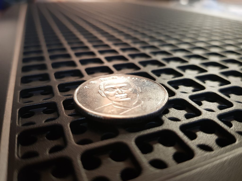 拆裝防塵板的過程中,發現四個角都是上圖這種稜角設計,除了比較不會刺人以外,給人一種不失方正卻又不單調的感覺。